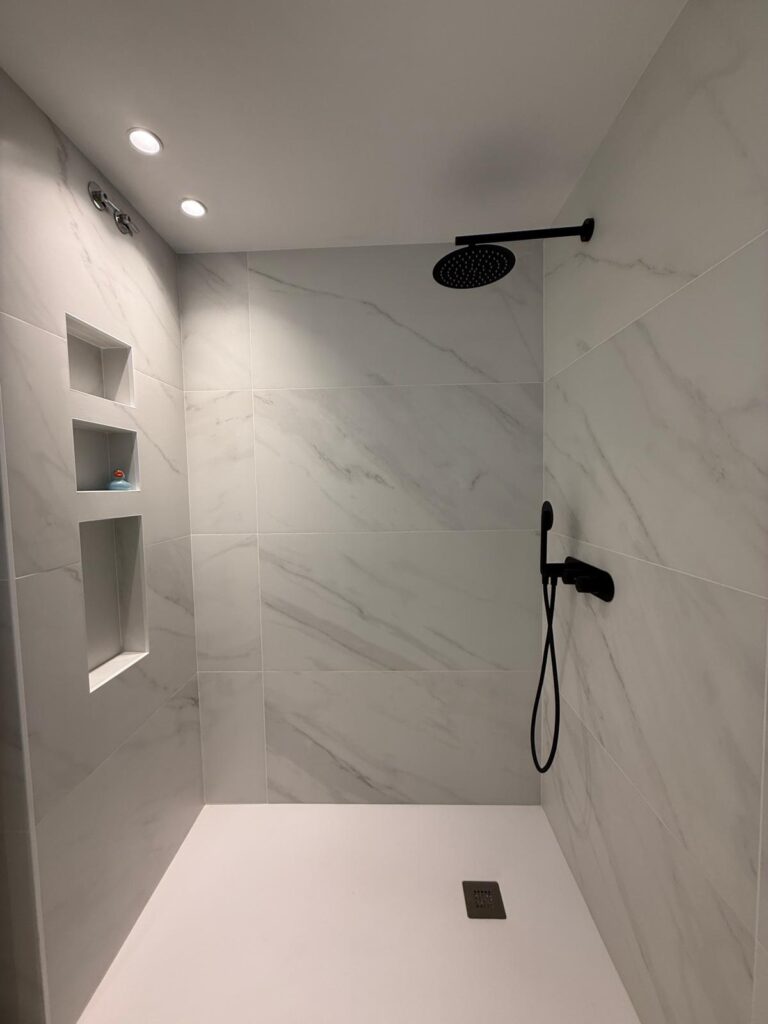 Realizamos la reforma integral de este baño, modernizándolo y adaptándolo a las preferencias de los clientes. Buscaban un espacio visualmente limpio, ordenado y cómodo, por lo que redistribuimos las instalaciones para optimizar la organización del espacio.