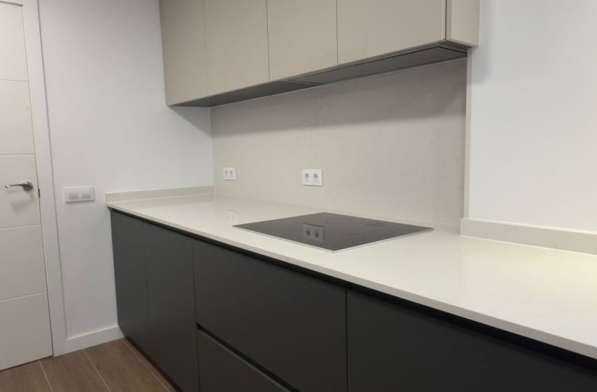 Esta cocina nace con una idea clara: transformar un espacio tradicional en un ambiente actual, luminoso y ordenado, pensado para disfrutarse sin prisas. El proyecto parte de la necesidad de ganar amplitud visual y funcionalidad, dando lugar a una distribución lineal que aporta continuidad y calma al conjunto.